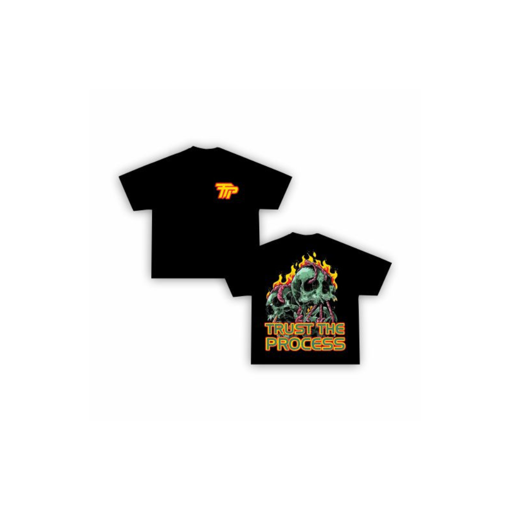 The Flame Skull Tee is a straight-up statement piece: a fiery skull graphic blazing across the back with the words that carry weight — Trust The Process. It’s about facing the heat, walking through it, and coming out sharper than before.